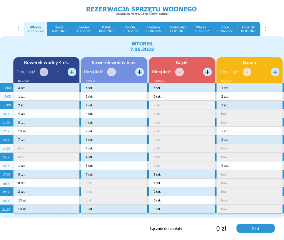 Formularz rezerwacji sprzętu wodnego (koncept)